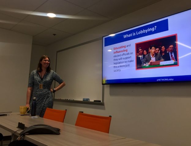 “Unlike Erin, I had been on a few lobby visits prior to beginning my work here at NETWORK. The first time I went on a lobby visit was as a college student after attending the Ignatian Family Teach-In when I myself was first trained by a NETWORK staff member on how to lobby, almost five years ago. I vividly remember how excited and equipped I felt after completing my first training and attending my first lobby visit. Realizing now that Erin and I have trained almost 100 high school students, and equipped them with these same skills, has been incredibly rewarding. We all have the ability to lobby and advocate our elected officials on issues that matter to us. As constituents, our Members of Congress work for us. NETWORK’s “How to Lobby” training helps to answer the questions that can make lobbying seem scary.”