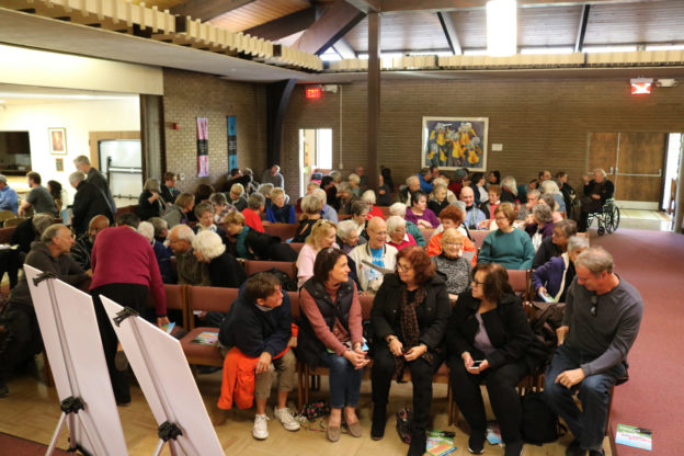 There was general agreement that a major solution to these issues is to get out the vote in our midterm elections in order to elect legislators who work for the common good, and end the gerrymandering and control of dark money from outside sources. At this point, Betsy Rader, Congressional candidate for Ohio’s 14th district, stepped forward and shared her experience of growing up in poverty, becoming a civil rights lawyer and being absolutely convinced that government should represent “We the People.”