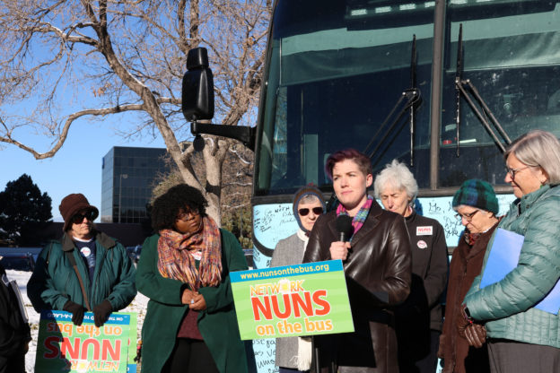 At 9am on October 15, a gaggle of folks came together outside of Representative Mike Coffman’s office to speak about NETWORK and Nuns on the Bus’s focus on “reasonable revenue for responsible programs.” Nuns on the Bus is on the road again to talk to people about tax cuts which primarily benefit wealthy persons and will definitely hurt the most vulnerable people among us.