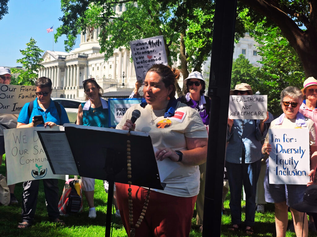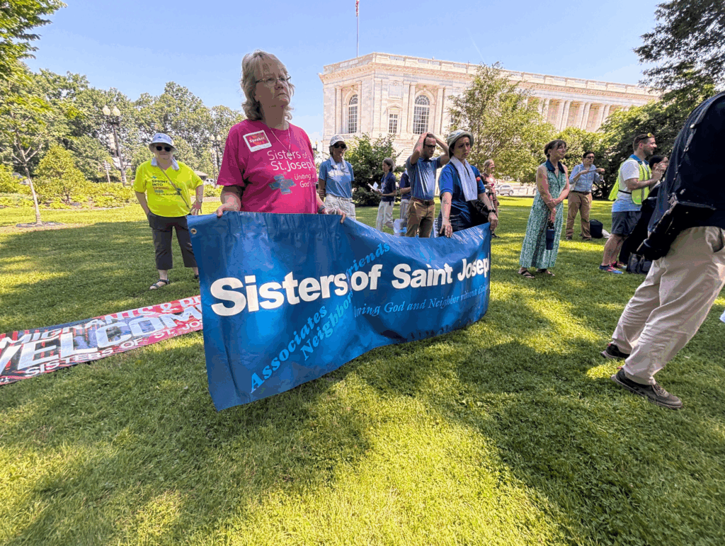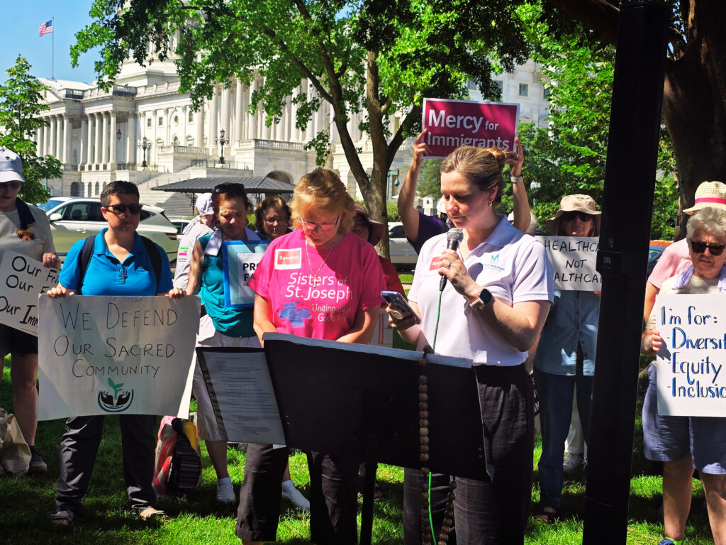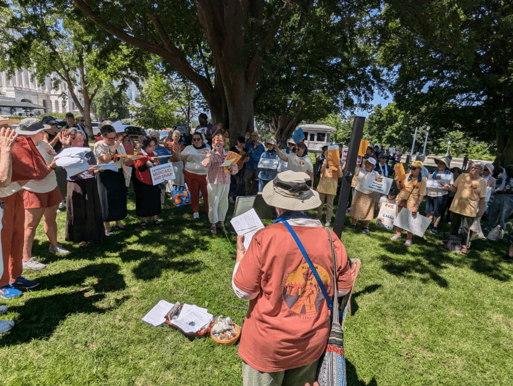 Catholic Sisters from more than 50 congregations around the country gathered in 100 degree heat for prayer and public witness on Capitol Hill on June 24, 2025 for Sisters Speak Out. Joined by social justice organizations and Spirit-filled advocates, they urged the Senate to reject steep budget cuts that will gut Medicaid, the Supplemental Nutrition Assistance Program (SNAP) and more programs vital to the well-being of people in every state in our country.