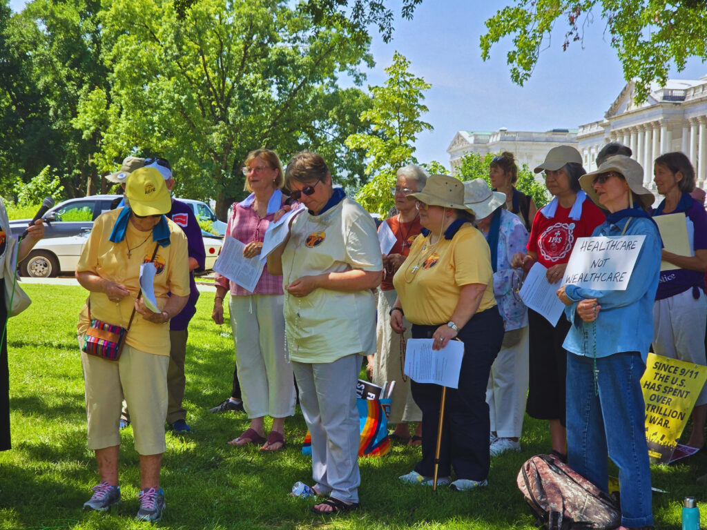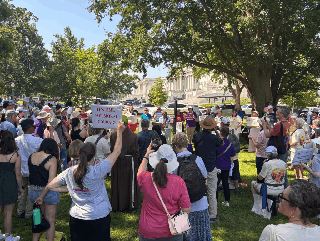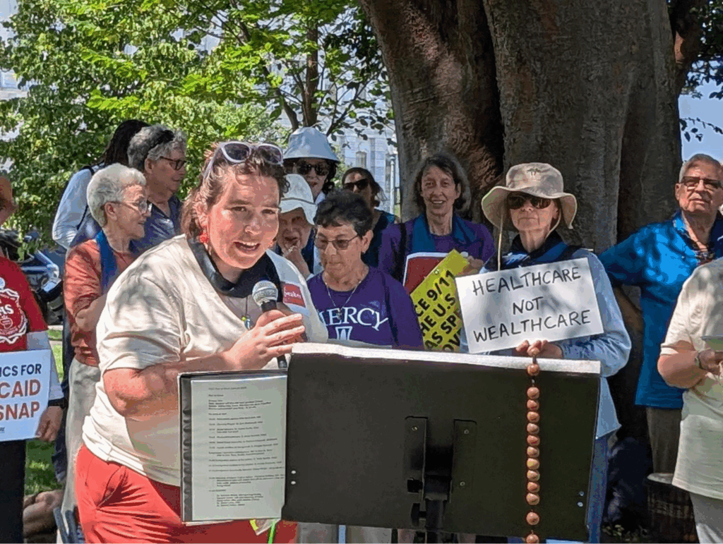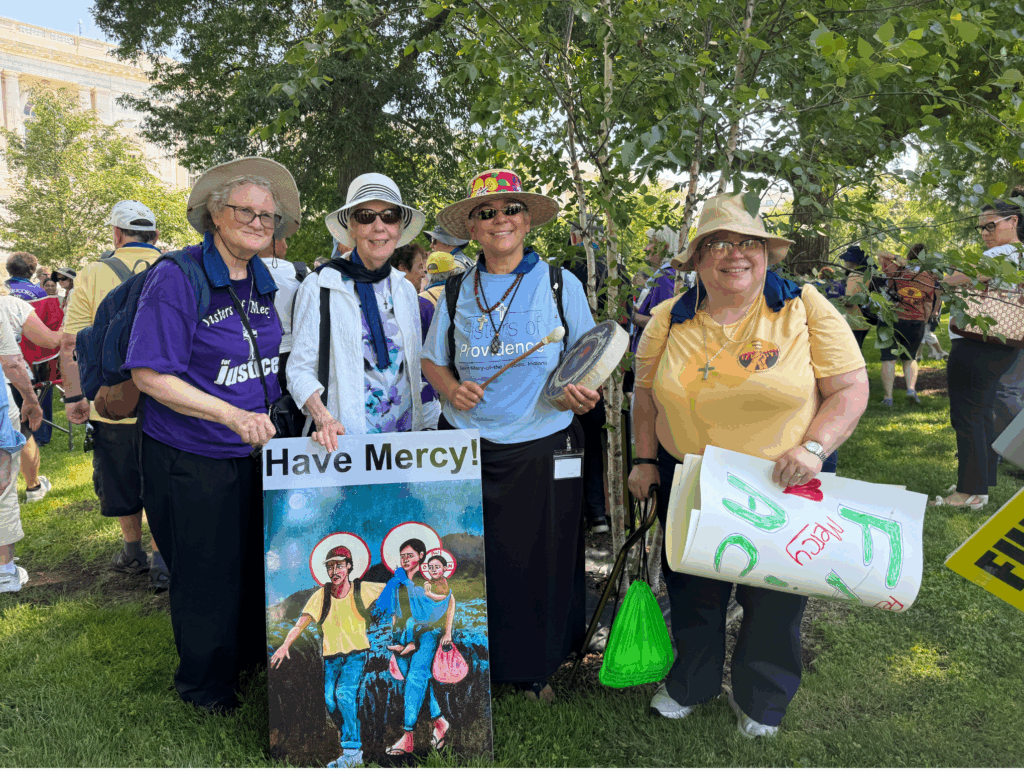 Catholic Sisters from more than 50 congregations around the country gathered in 100 degree heat for prayer and public witness on Capitol Hill on June 24, 2025 for Sisters Speak Out. Joined by social justice organizations and Spirit-filled advocates, they urged the Senate to reject steep budget cuts that will gut Medicaid, the Supplemental Nutrition Assistance Program (SNAP) and more programs vital to the well-being of people in every state in our country.