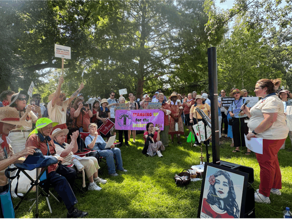 The group of over 300 people also heard Sisters Speak Out in opposition to the massive increase in spending for the inhumane roundup of our immigrant neighbors, their deportation without due process, and the cruelty of family separation.