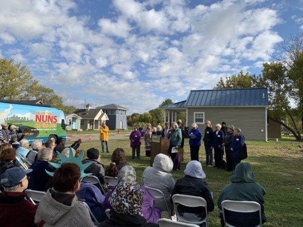 The women’s stories so powerfully demonstrated that life is about change and, when given the tools, they embraced a second chance. While nationally the recidivism rate is 49.5% in Ohio, because of the policies they’ve put in place, it is 27.5%! Hurrah for such creative private/public partnerships. LMM’s programs are indeed responsible programs that maximize the federal, state, and county revenues raised through taxation. May Chopping for Change not be on the chopping block to pay for the 2017 tax law. What an end to this the second leg for the Nuns on the Bus Tax Justice Truth Tour.