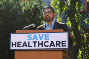 The vigil wove together prayer, prophetic testimony, and public action–and urged lawmakers to place compassion, justice, and the common good above political brinkmanship. Speakers rooted their comments in the shared moral teachings of their traditions and declared fervently that healthcare is a moral right. Christian, Jewish, and Muslim leaders bore public witness that healthcare is not a privilege for the wealthy, but rather a sacred right for all.