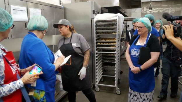 The visit to Homeboy Industries was one of the site visits the Nuns on the Bus are making to listen to people all across the United States — from Los Angeles to West Pam Beach, Florida — to see how U.S. tax policies are affecting them.