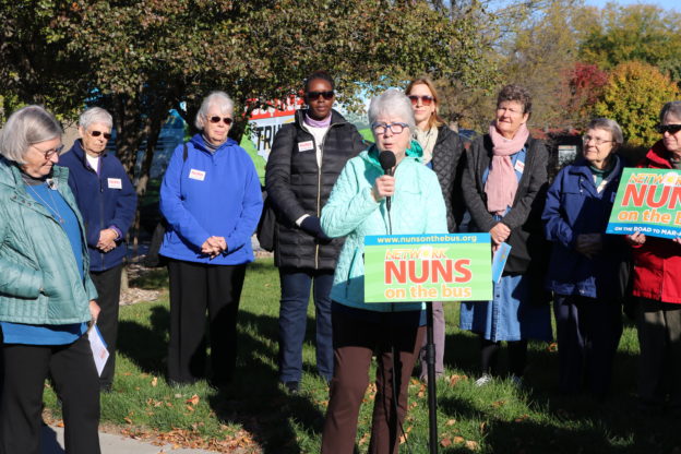 Despite that, when our bus arrived outside his office, there were more than 50 Nebraskans ready to rally with us and make their voices heard.