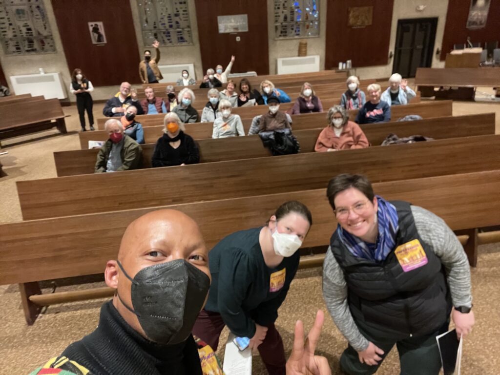 On October 18th, NETWORK’s Pope Francis Voter Tour stopped in Cleveland, OH and visited Esperanza Threads and hosted a Town Hall at Blessed Trinity Parish. At both the Site Visit and Town Hall, each speaker lifted up the power of community and connection. For three NETWORK staff members on tour — Eilis, Erin, and Julia — this stop was a homecoming and a chance to lift up the ministry of our community, parish, and hometown.