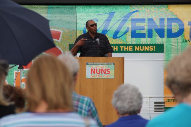 Our kick-off rally in Janesville Wis. sent us off with stories of gaps – tragedies of healthcare bungles, frightening homelessness and painful immigration bureaucracy. We saw tears in their eyes. Reverend Hearns prayerfully and emphatically reminded us: “We are God’s children… we are God’s People.” We signed the bus in hopes that gaps would be understood and mended with policies good for all of God’s people.