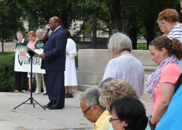 For our first stop of the day, we participated in a rally in front of the State Capitol. Despite the disruption of a strong thunderstorm, people listened with attention the stories shared by the speakers.
