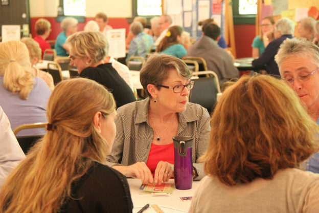 We then had small group conversation, after which the groups reported out the need for more jobs that pay a living wage, and the need for re-tooling workers for today’s jobs. The healthcare group raised the issue of child hunger, and we learned that 60-65% of children in the area suffer from food insecurity. The group asked “Why is this happening in our community?”