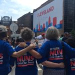 A severe thunderstorm blasted the morning sky over Cleveland as we boarded the bus for downtown. Sister Simone Campbell described the streaks of lightening and cracks of thunder as "the sky crying that a National Convention is being held here."