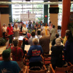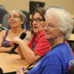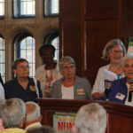 Rev. Schuler of First Unitarian Society, welcomed more than 300 people and the NETWORK Nuns on the Bus 2016 on a warm sultry night in Madison, Wisconsin. The beautiful First Unitarian Society was filled with energy and excitement as we launched the Mend the Gaps theme for this pre-election time.
