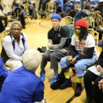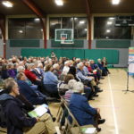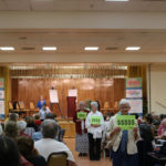 When we arrived to our Town Hall for Tax Justice in East Lansing, the gymnasium was full of very enthusiastic supporters of Nuns on the Bus. There were members of a number of congregations in the East Lansing area and a number of denominations. There were some who traveled from as far away as Kalamazoo, and others from near-by communities. Slideshow: East Lansing Town Hall