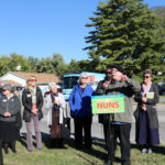 Sr. Simone and Sr. Richelle shared moving stories from the road trip, and explained why the Republican tax plan is so devastating to over 60% of the country’s population, encouraging all to get out the vote for the midterms. After the podcast concluded, all gathered were invited to sign pledge cards and move outside to sign the bus. It was a beautiful moonlit night – Rev. Black “signed the bus” with a Church of the Redeemer bumper sticker with this slogan: “supporting the separation of church and hate since 1852.”Slideshow: Rep. Faso Lobby Visit