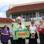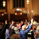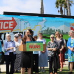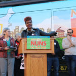 Excitement always mounts inside ‘The Bus’ as we pull up for a town hall, rally, press conference or lobby visit. Hospitality always awaits us. Parishioners at St. Joseph University Parish in Buffalo, NY invited us to come early for a delicious, amazing supper. After supper we arrived at the church to be warmly welcomed by 400 strong who came out on a work night to participate in the town hall. Reflection: Nuns on the Bus Week 2