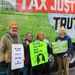 We arrived at the Old Courthouse in South Bend welcomed by a wonderful group of people whose umbrellas were being put to good use because of the rain pouring down. Sister Robbie Pentecost, OSF led the group in a welcoming prayer and message of gratitude for waiting so long for the bus to arrive.Slideshow: South Bend Rally for Tax Justice