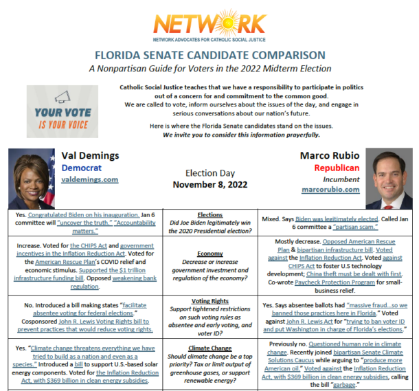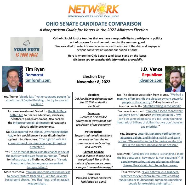 As Pope Francis tells us, issues of justice are equally sacred. Research and reflect on the candidates based on their commitment to make communities safer, preserve our democracy, and prioritize people and families over the ultra-wealthy and corporate tax-cheats.