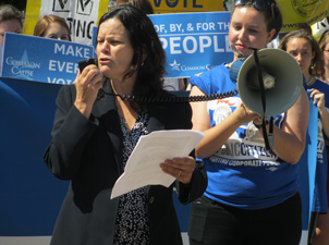 WASHINGTON, June 8, 2016 – NETWORK Lobby for Catholic Social Justice joined a coalition of over 20 groups at a press conference in front of the White House calling on the President to take action to curb the influence of money in politics and urging Congress to act now to ensure equal access to the ballot box for all eligible Americans.  Laura Peralta-Schulte, Senior Government Relations Advocate at NETWORK, said the following:
