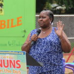 Bobbie of Voices of Women calls attention to the need for community and affordable housing in neighborhoods experiencing or at risk for gentrification.